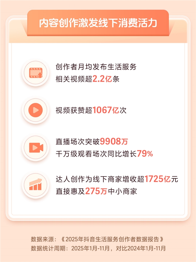 近日,《2025年抖音生活服务创作者数据报告》(以下简称“报告”)发布。报告显示,平台上生活服务相关内容生态持续繁荣,已成为连接线上流量和线下消费的重要桥梁。